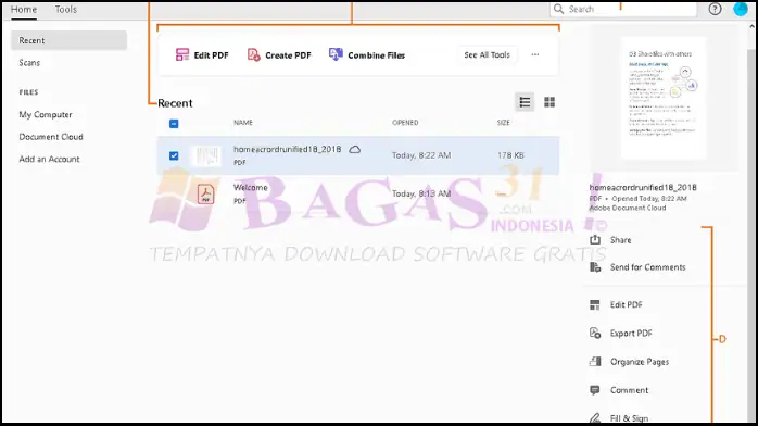 Adobe Acrobat Pro Bagas31 adalah versi lanjutan dari Adobe Acrobat DC, generasi baru Adobe Acrobat Pro. Seperti sobat tau, software ini sangat powerful dalam mengolah dokumen PDF. Dengan software ini sobat bisa melihat, membuat, mengedit, mengelola, mengonversi, mengekstrak, melindungi, menandatangani dokumen PDF, dll.