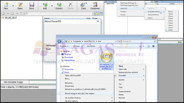 Dengan PowerISO, Anda dapat membuat drive virtual untuk memasang citra disk. Fitur ini menghilangkan kebutuhan akan disk fisik dan memungkinkan Anda mengakses konten langsung dari komputer Anda.